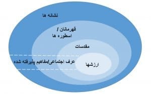 لایه و یا مرحله بعدی، تقدیس و مقدس کردن نشانه ها و مفاهیم ساخته شده است. در این مرحله با تقدس بخشیدن به آنها، آنها را از گزند فرسایش و تخریب احتمالی در طول زمان حفظ خواهند كرد. یکی از این مفاهیم ساخته شده که از مرحله تقدس سازی گذشته، برای نمونه، “کربلا” است. شما براحتی میتوانید سیر نشانه و مفهوم سازی، اسطوره و قهرمان سازی و تقدس سازی آن را بخوبی ردیابی و بررسی کنید. قداست “کربلا” و قهرمان و اسطوره آن، “حسین”، “عباس” و غیره منوط به ارزشهای فرهنگی بعد از انقلاب نیست. شما براحتی با دیدن دادگاه گلسرخی، یکی از مارکسیسهای ستیزه جوی در زمان شاه، به قداست ارزشهای “کربلای حسینی” پی خواهید برد. وقتی که مفهوم و نشانه ای در جامعه مقدس شد، آنوقت آن مفهوم و نشانه اجتماعی تبدیل به ارزش فرهنگی خواهد شد. بصورت کلی، وقتی که عرف و کدهای اجتماعی به عنوان یکی از اصول اساسی جامعه تمرین شود و بصورت مستمر و در دراز مدت، بیش از صدها سال در جامعه تمرین شود، ان وقت بصورت یکی از اصول ارزشی فرهنگی در جامعه خودش را تثبیت خواهد کرد. این پروسه ارزش سازی اجتماعی که در بالا بصورت بسیار مختصر به آن اشاره شد، بسیار پیچیده است.