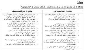 ت) حوزه خارج از فضا محصور شده بین خطهای سبز و قرمز نمایانگر افراد و یا نیروهائی هستند که در بررسی تحقیقاتی قرار نگرفته اند. دلیل این کار هم روشن است، ارزشهای انتخاب شده بسیار وسيع و از سوی دیگر “تندرو” که در عرف جامعه نمیگنجند بوده و بازتاب ارزشهای اجتماعی را نخواهند داشت. لذا از ارزیابی انها صرف نظر شده است.