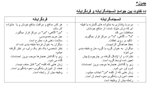 جدول ردبندی هافستد، بر اساس تفاوت ارزشی جوامع در رابطه با انسجام گرایانه و فردگرایانه