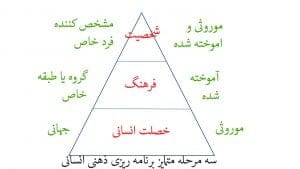 با بررسی نمودار (2) اینگونه نمایان میشود که هویت ما ساخته شده بر خصلتهای انسانی و فرهنگی که در آن بدنیا آمده و رشد کرده ایم است. در واقع هویت ما نمایانگر “شخصیت” ماست. شخصیتی که نتیجه آموخته ها، آموزشها و بعضی خصلتهای موروثی ماست.
