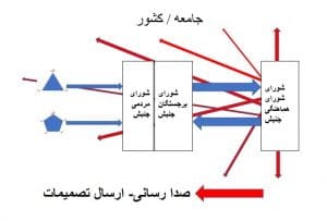 راهکار شورای هماهنگی جنبش آردا برای انتقال تصمیم های گرفت شده در شورای هماهنگی جنبش به واحدها یا هسته های مستقل جنبش از یکسو و از سوی دیگر کسب اطلاعات و دریافت شرایط و توانائیهای هسته های آردا، مطابق نمودار(5) امکان پذیر خواهد شد.